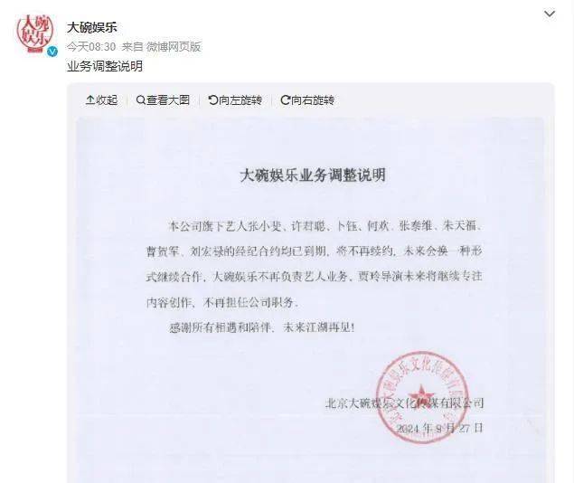 9月27日,大碗娱乐发布业务调整说明: