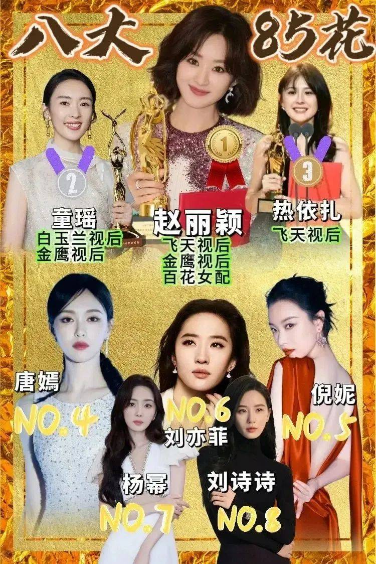 但这不刚赶上赵丽颖凭借《花开半夏》拿下“飞天视后”一飞冲天,成为另外几个花仰望的对象嘛。
