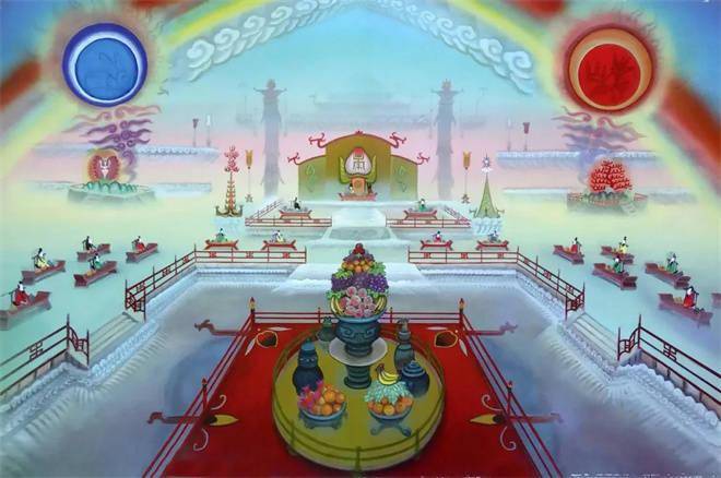 从绿意盎然的花果山,到蔚蓝如谜的深海龙宫,再到仙气缥缈、金碧辉煌的天庭,是传统的风雅与敦煌壁画的浪漫。