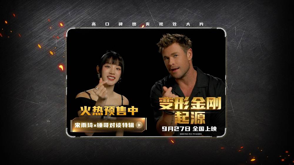 搜狐娱乐讯 由美国派拉蒙动画公司和美国孩之宝公司出品的电影《变形金刚:起源》发布中国推广大使宋雨琦与擎天柱配音“锤哥”克里斯·海姆斯沃斯对谈特辑,二人畅聊电影《变形金刚:起源》精彩故事与角色幕后,欢乐氛围点燃粉丝热情,讲述幕后故事见证起源。电影此前开启两轮特殊制式点映,9月27日正式上映,预售现已全面开启。