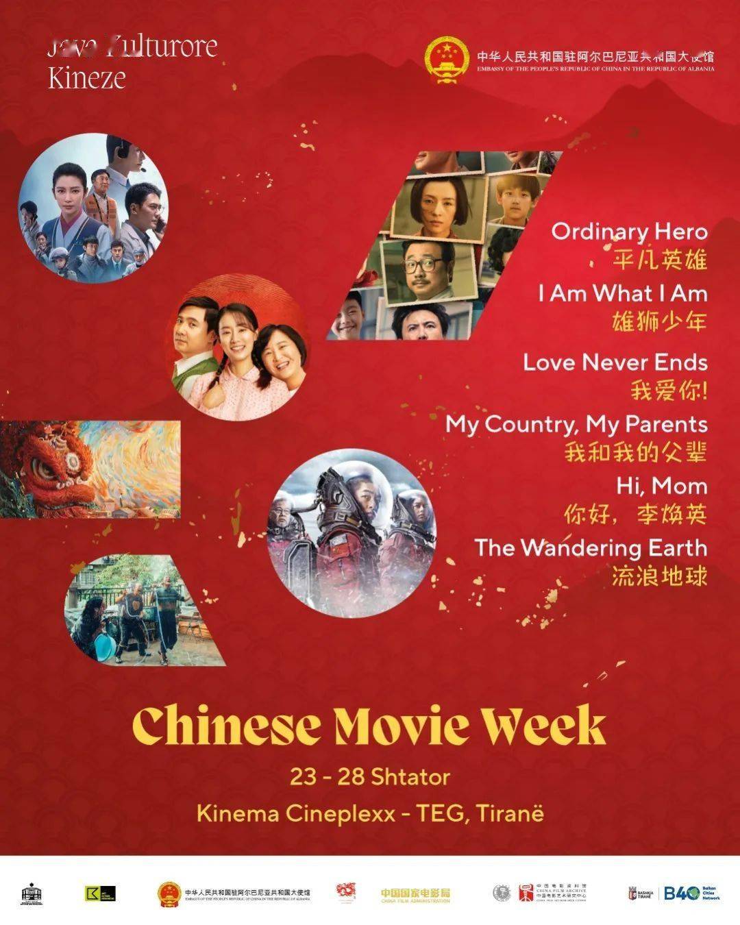 本次“中国电影周”得到中国电影资料馆的大力支持。在为期6天的电影周期间,将展映《平凡英雄》《雄狮少年》《我爱你!》《我和我的父辈》《你好,李焕英》《流浪地球》6部中国影片。