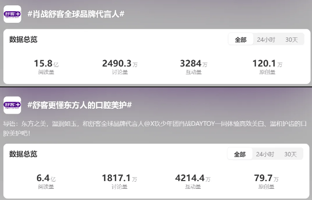 并且因为这个代言舒客的转发评论都超越了百万。