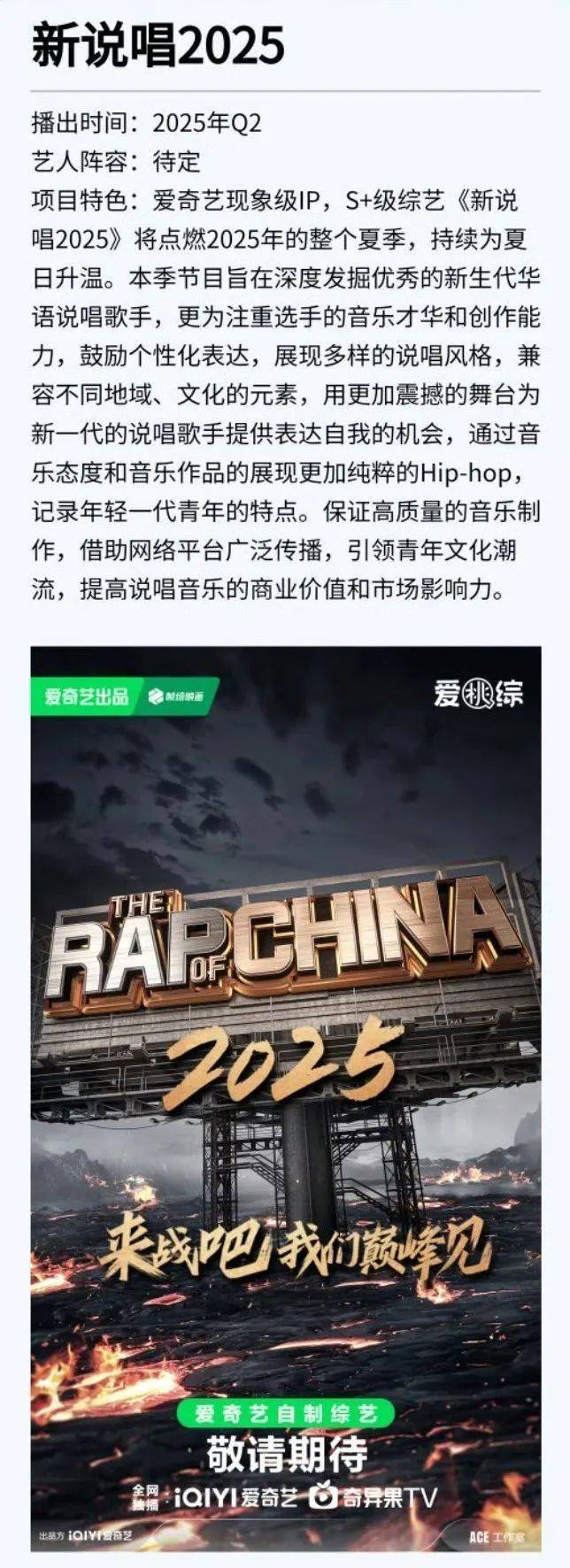 爱奇艺最新片单确认了!《新说唱2025》即将来袭!