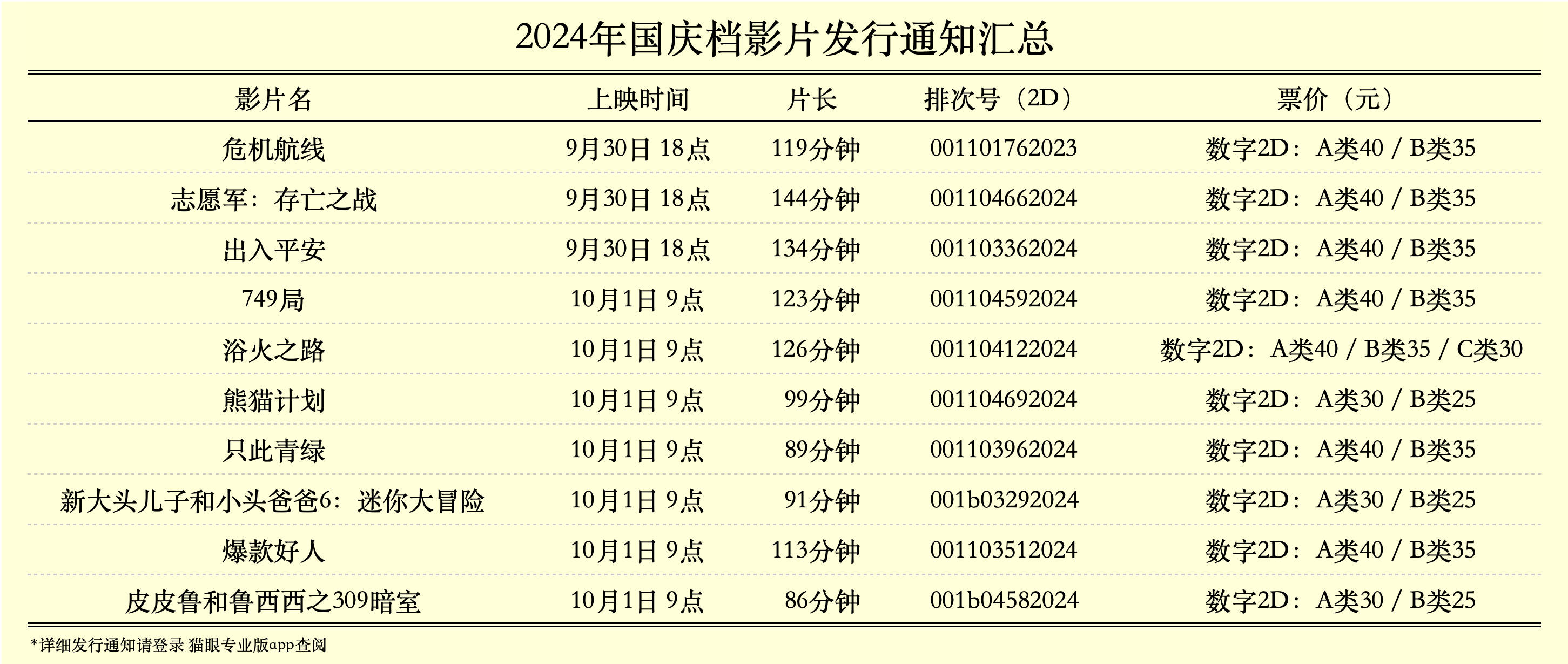 国庆“黄金周”临近,国庆档(10月1日-7日)新片发行通知全部释出。