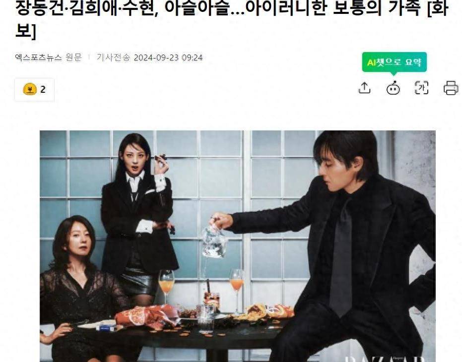 9 月 23 日,据韩媒报道,韩国时尚杂志《Harper's Bazaar》曝光了电影《普通家庭》导演许镇浩与张东健、金喜爱、秀贤三位演员的画报。