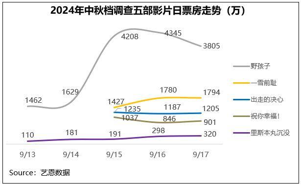 2024年中秋档一方面以多元化供给较好地满足了观众多样化的观影需求,另一方面投放影片市场整体氛围良好,为部分影片提供了较好的发酵空间。