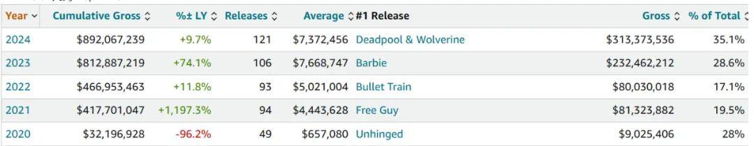 北美近5年暑期档数据(数据来源:Box Office Mojo by IMDbPro)