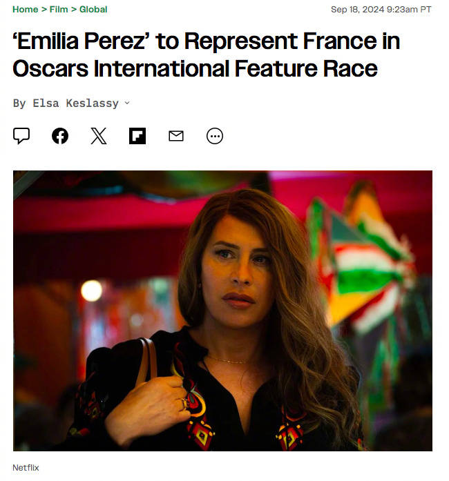 搜狐娱乐讯 据外媒,雅克·欧迪亚自编自导新片《艾米莉亚·佩雷斯》将代表法国角逐2025年第97届奥斯卡最佳国际影片。