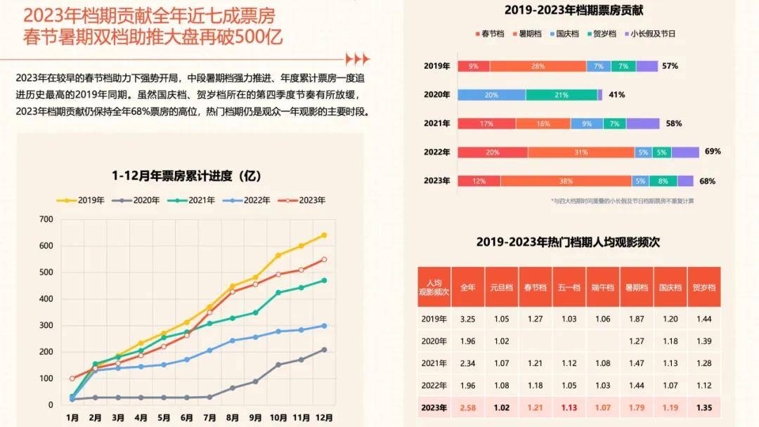 从上映时间来看,由于中国电影市场票房有很大的档期依赖症,据灯塔数据,2023年档期贡献仍保持全年68%票房的高位,热门档期是观众一年观影的主要时段。重映片可以尝试从平常周末档入局,不抢占热门档期,避免与新片撞档期。