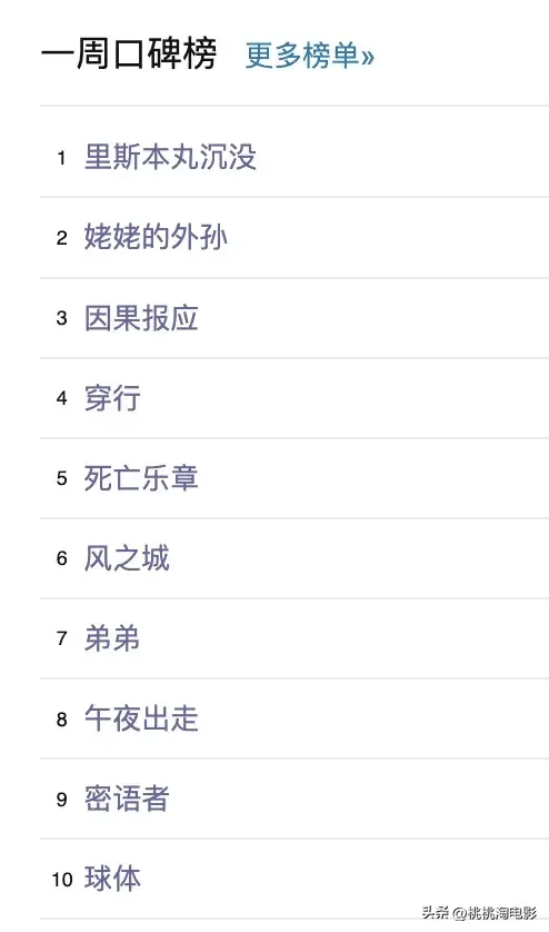 最后,还是例行附上一周豆瓣口碑榜的完整榜单: