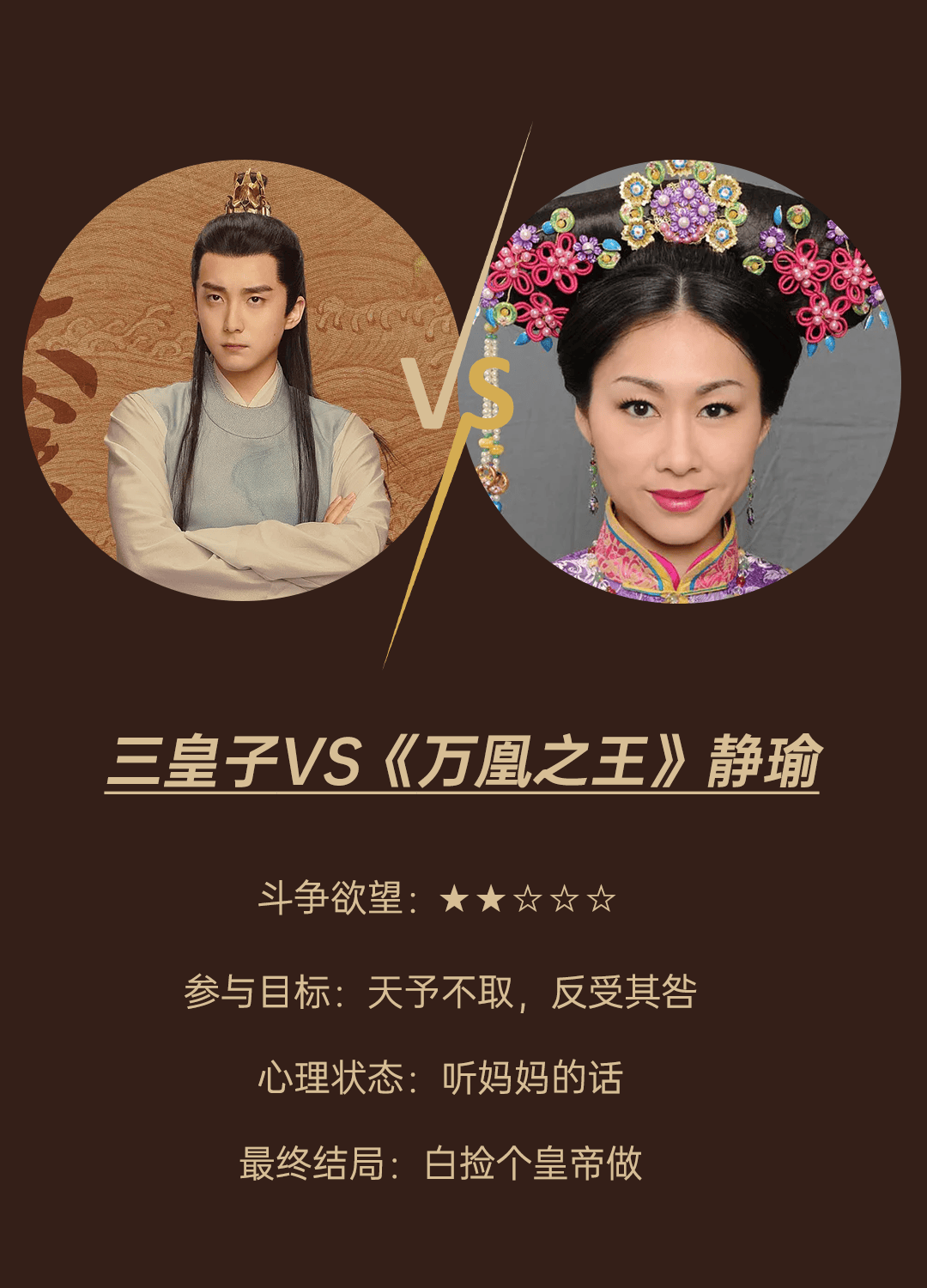 宫斗,有人斗得头破血流,也有人不声不响捡漏成功,比如《万凰之王》里的静瑜。她本来不过是全妃伊兰和皇后沅宛宫斗中不起眼的小配角,然而当两位BOSS斗得两败俱伤之后,谁想到我康慈皇太后反倒成为笑到最后的人?三皇子李承平同样如此,在二皇子与太子的鹬蚌相争中,成为了最终得利的渔翁。
