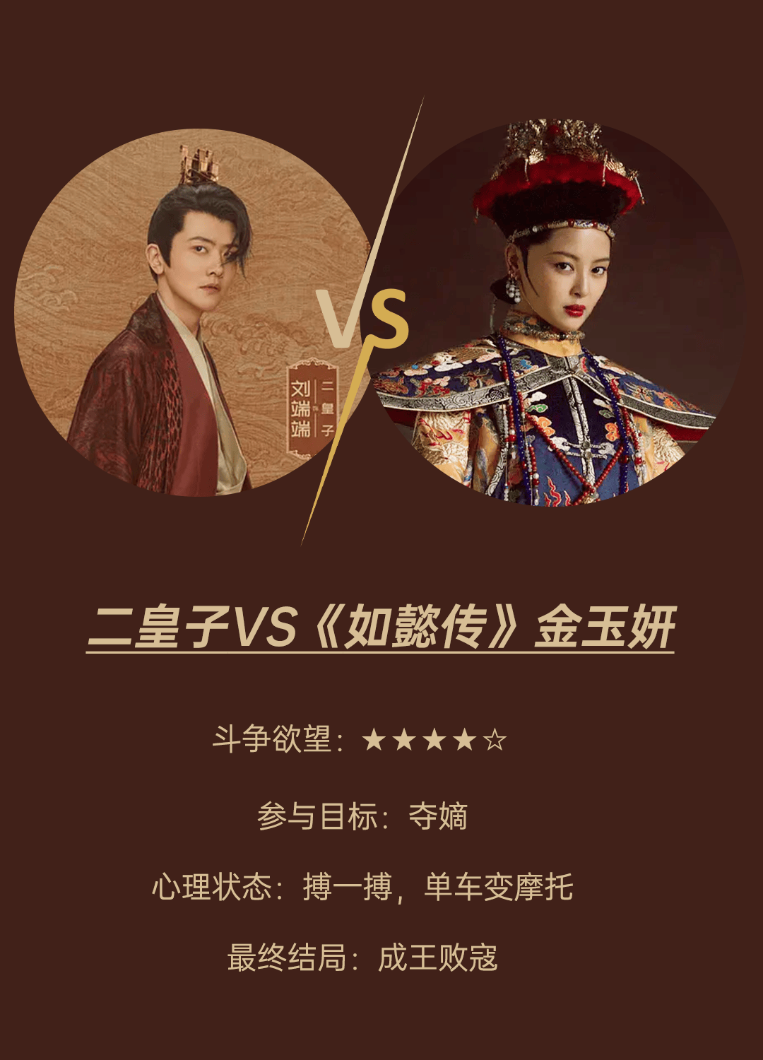 金玉妍作为嫔妃,主要责任是“开枝散叶“,她超额完成任务,生下了皇帝登基后的第一个“贵子”,随后在宫斗中期落败降位,旋即依靠母族得以复位,她才意识到:自己只不过是生育机器、和亲工具人罢了,并没有人真正支持她坐上后位,随后她无所不用其极的谋求儿子上位,以期自己升级为太后,可惜手段虽有,到底技不如人。二皇子也经历了类似的轨迹。