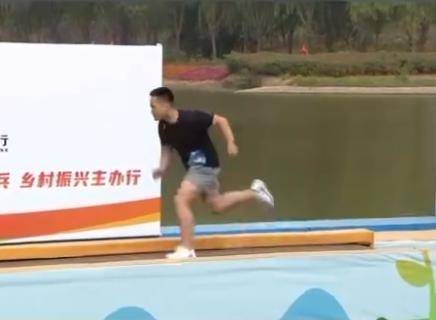 昨天的节目内容里,一名小伙子逆行跑过急转的跑步机,冲过第一关,在踏上翻滚积木时落水。