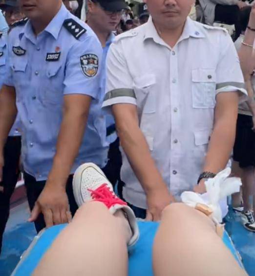 “我感觉是水比较浅,水下有个不平的东西,当时一瞬间还没感觉,脚崴了,只好硬撑着走,走上岸就走不动了,脚已经使不上劲儿了。最后用一只脚蹦到救护车上。”