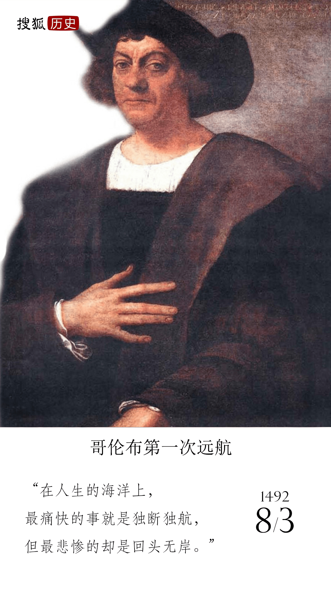 1492年8月3日,意大利航海家哥伦布(1451—1506年)终于实现了航海计划,率领由3艘帆船组成的船队,在太阳还未升起的清晨,从西班牙的巴罗斯港扬帆起航了。