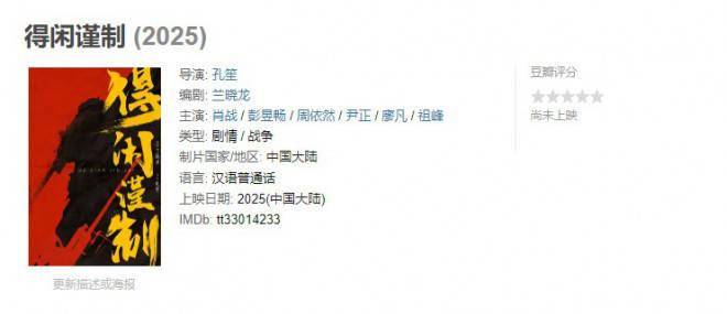 据豆瓣显示,《得闲谨制》由执导,兰晓龙编剧,、、、、、主演,将于2025年上映。
