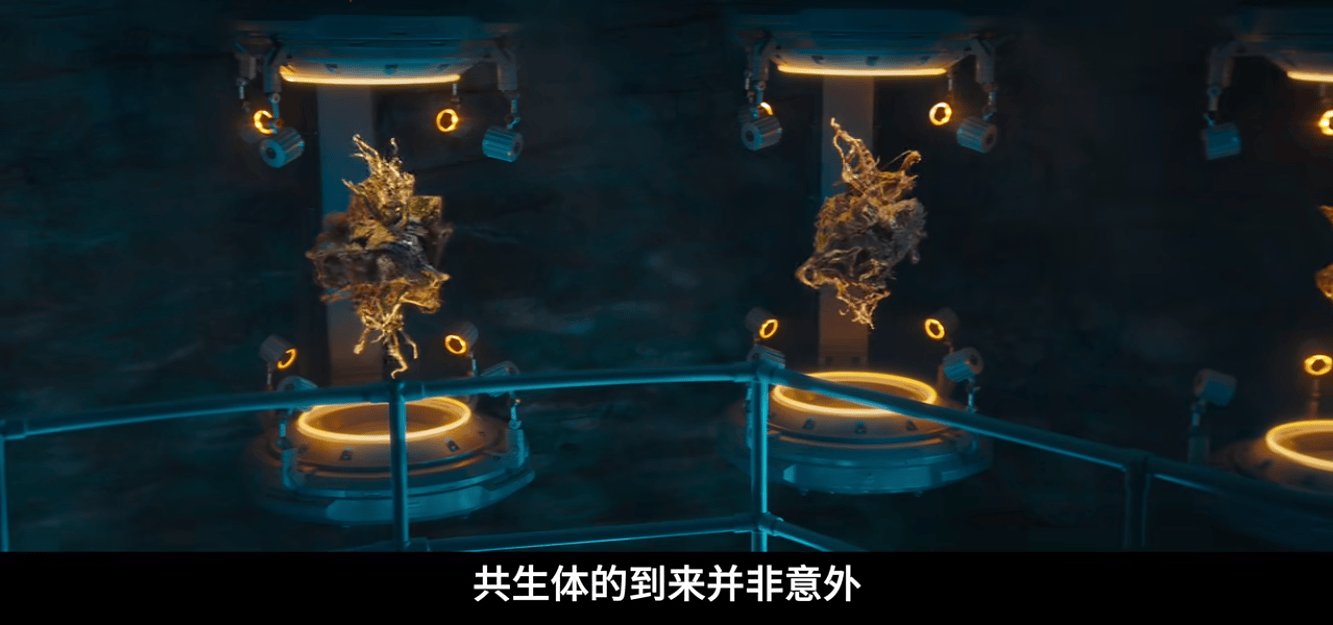 镜头一转切到军方神秘研究基地,他们对共生者批量到来并不意外,这似乎暗示着,终章里的军方武力值将极大增强,而那些在光照中蠕动的生命体是什么?难道是共生体被收编了?而他们抓捕毒液和埃迪的目的又是什么?这是电影的第二大悬念。