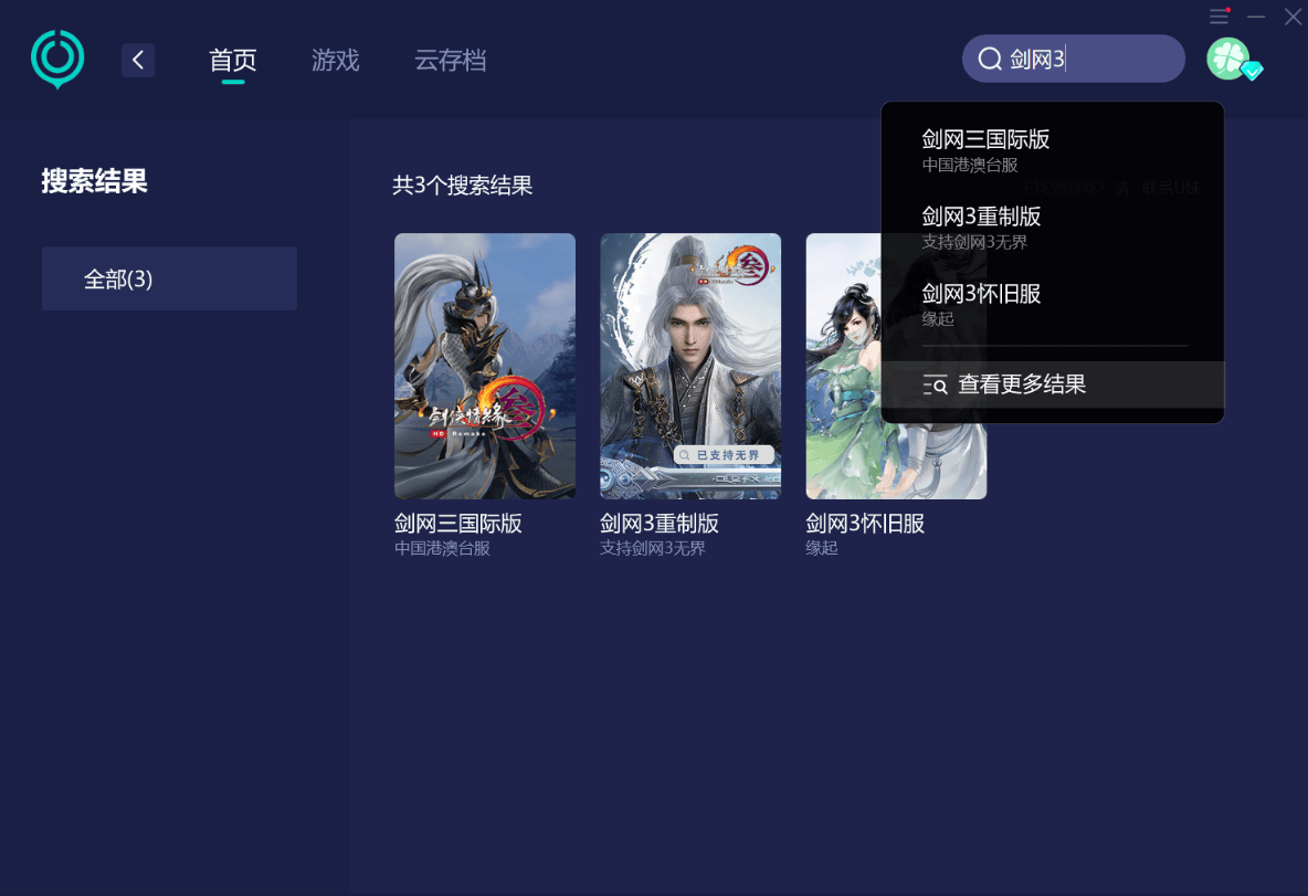 (1)在UU中搜索《剑网3》