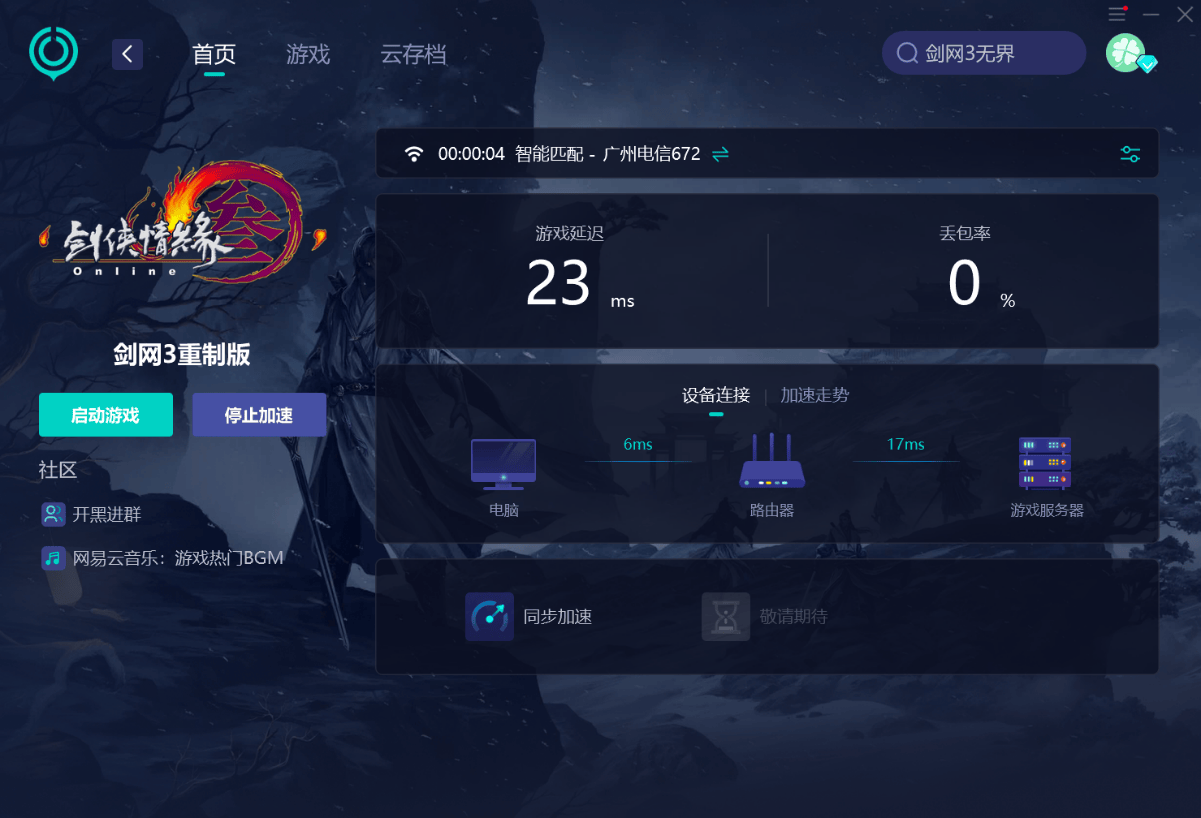 二:点击优化即可获得稳定网络连接,海外也能畅玩剑网3无界