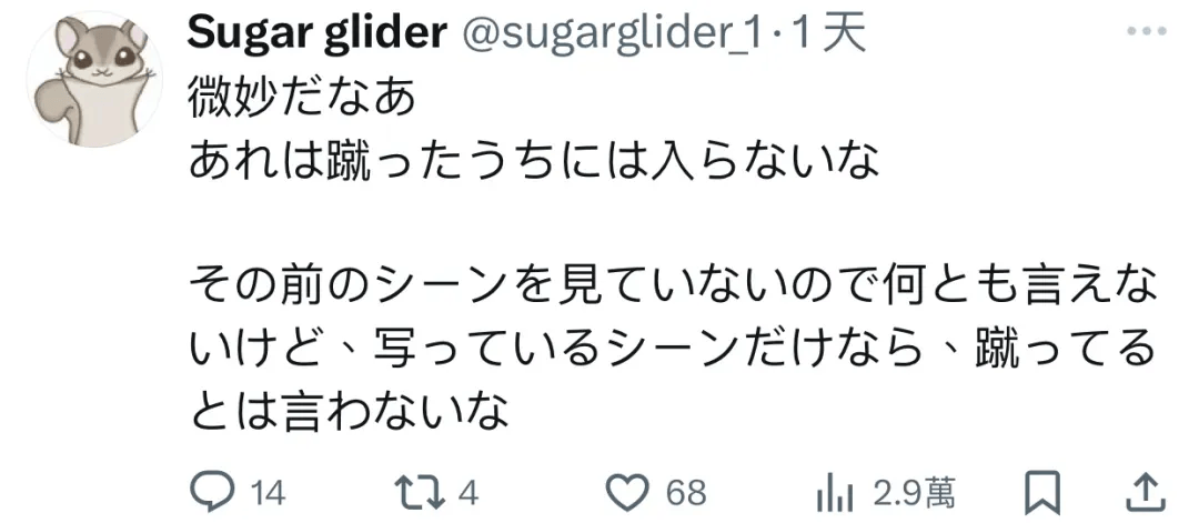 不过,有不少细心的日本网友指出,中国男子的动作并非如原田所言在“踢鹿”。
