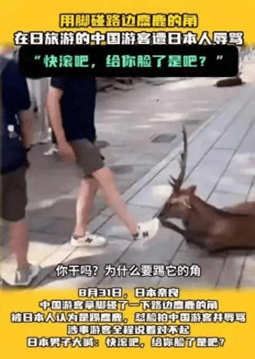 游客不经意间用脚碰了碰鹿角,这下可好,旁边一位日本大爷直接火冒三丈,冲着游客就是一顿吼:“快滚吧,给你脸了是吧!”这视频一上传到网上,立刻引起了热议。