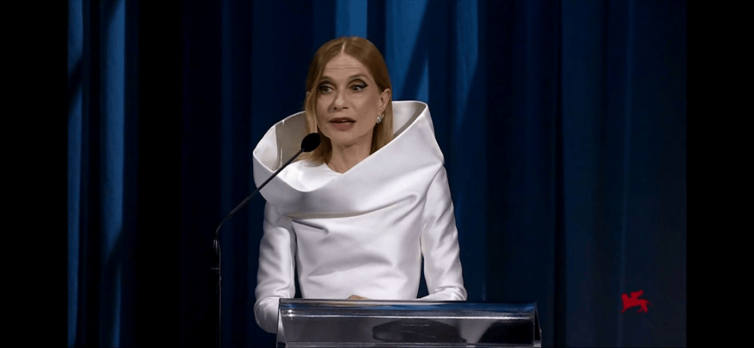 于佩尔还代表评审团向妮可·基德曼表示了慰问,妮可·基德曼凭借新片《小心肝儿》中“无所畏惧”的表演而获得了今年威尼斯最佳女主角奖,但她因为母亲的突然离世而未能出席。
