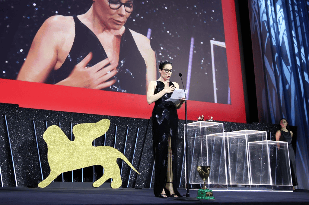 相反,金狮奖颁给了两届奥斯卡金像奖得主,阿莫多瓦关于死亡的剧情片《隔壁房间》,影片由蒂尔达·斯文顿和朱丽安·摩尔主演,《综艺》评价本片为一场看似直白但巧妙的情感之旅,且伴随着终结生命主题的情感冲击。