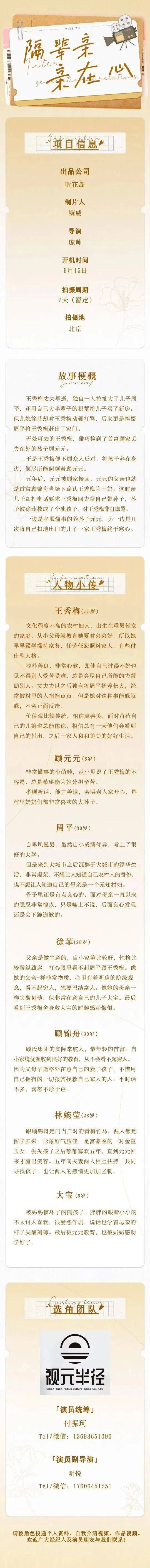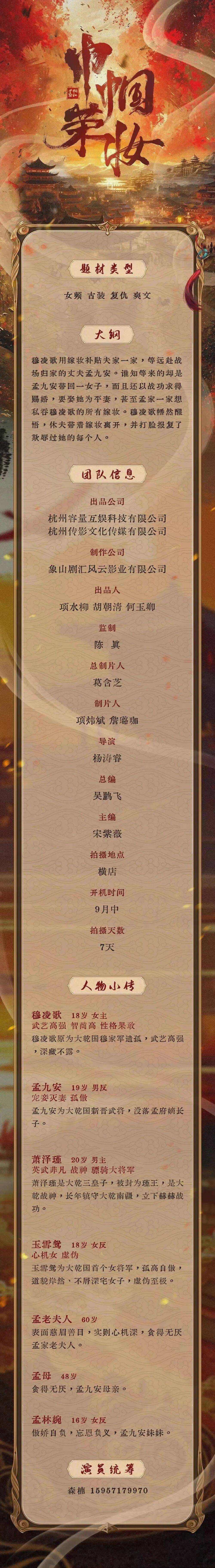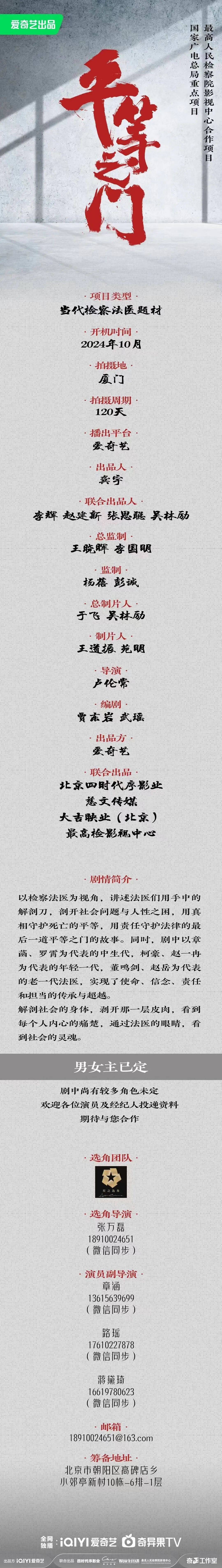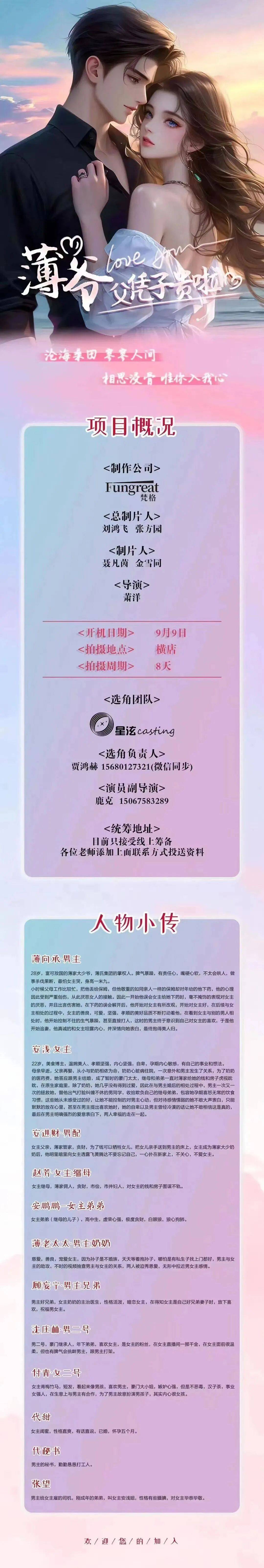 剧中部分角色未定,欢迎广大经纪人演员投递资料。