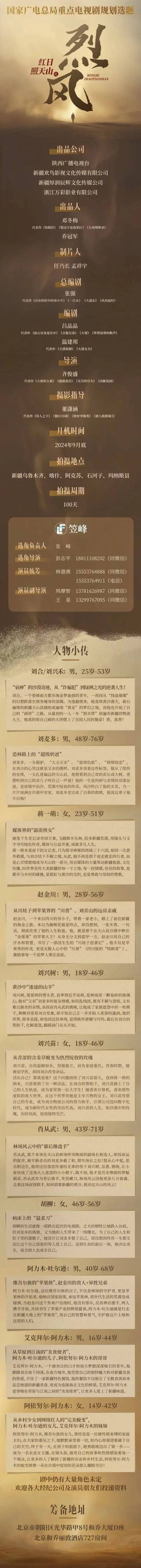 免责声明:戏客Seeker公众号(“本平台”)中全网组讯的信息、内容(“组讯信息”,包括但不限于影视项目名称、项目介绍信息、出品公司信息、导演信息、选角团队信息、拍摄相关信息、联系方式等)均来源于内容信息相关方提供或互联网公开信息。本平台不对组讯信息的真实性、准确性、完整性、及时性、关联性、适用性及安全性提供任何明示或默示的担保。请您谨慎参考或使用组讯信息,并确保您的人身、财产安全,本平台不对您使用或参考组讯信息而造成的后果承担任何责任。