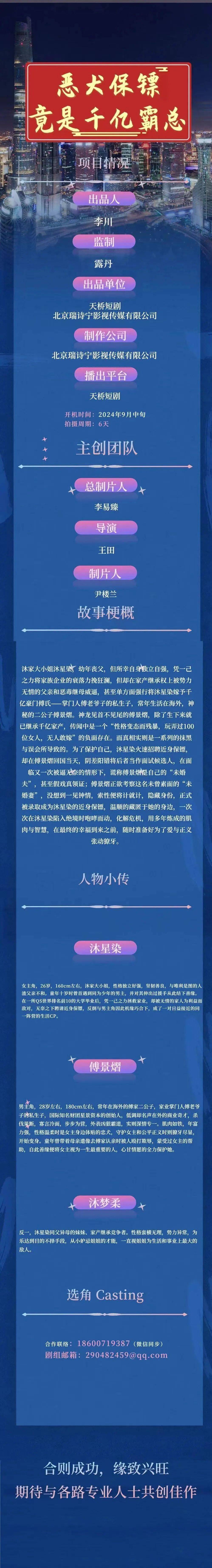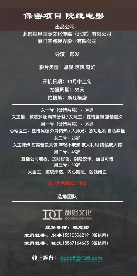 选角负责人:贾鸿赫 15680127321(微信同步)