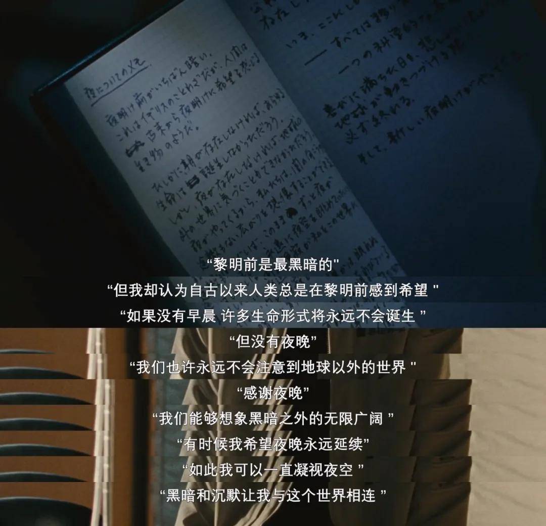 黎明前的黑暗并不消极,因为它能让人看到更远更广的星光,注意到地球以外的世界,有了黑暗,便可以一直凝视夜空,让我们与这个世界相连。