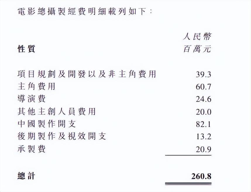 或许你觉得1.8亿制作成本高,其实已经算很良心了。对比一下,宁浩和刘德华合作的《红毯先生》,当时出品方欢喜传媒给出了白纸黑字的制作经费明细。上面清晰写着,项目规划及非主角费用3930万,主角费用(刘德华片酬)高达6000万,宁浩的导演费拿走2400多万,其他主创人员指的应该是摄影美术灯光等剧组工作人员再拿走2000万,七七八八加起来,共计2.6亿。