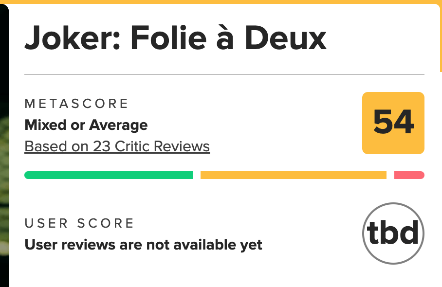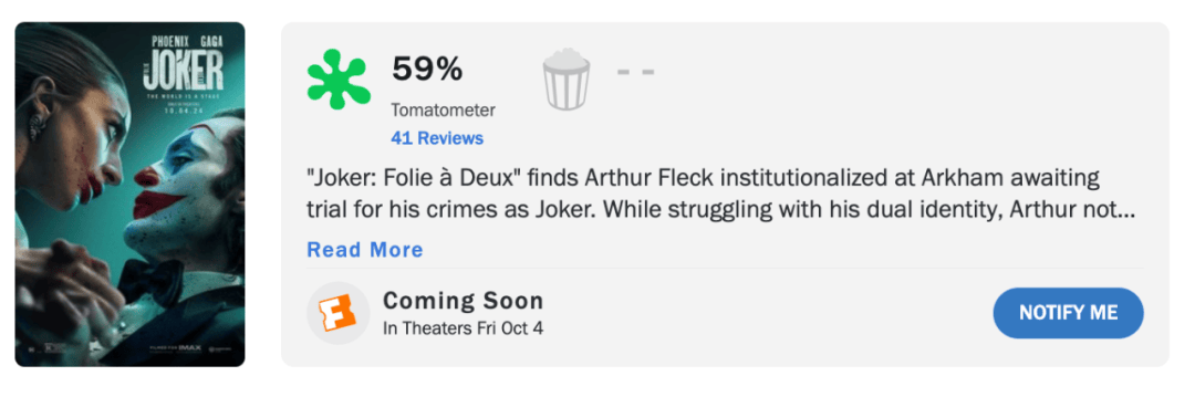 当然,当初第一部《小丑》的评价其实也不算特别好,烂番茄仅有69%的新鲜度,metacritic也仅有59分。