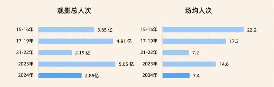 也就是说,2024年暑期档的票房成绩背后,是总观影人次和场均人次的双重下跌。