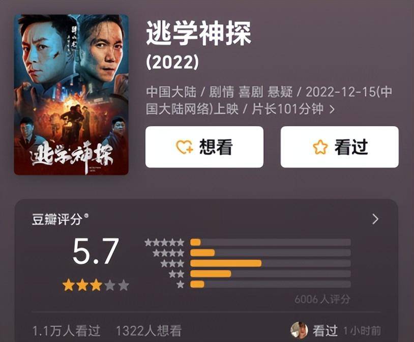 从豆瓣上的一些观众评论来看,如果等开分了的话,估计分值不会超过5.5分,甚至很有可能在5分以下。