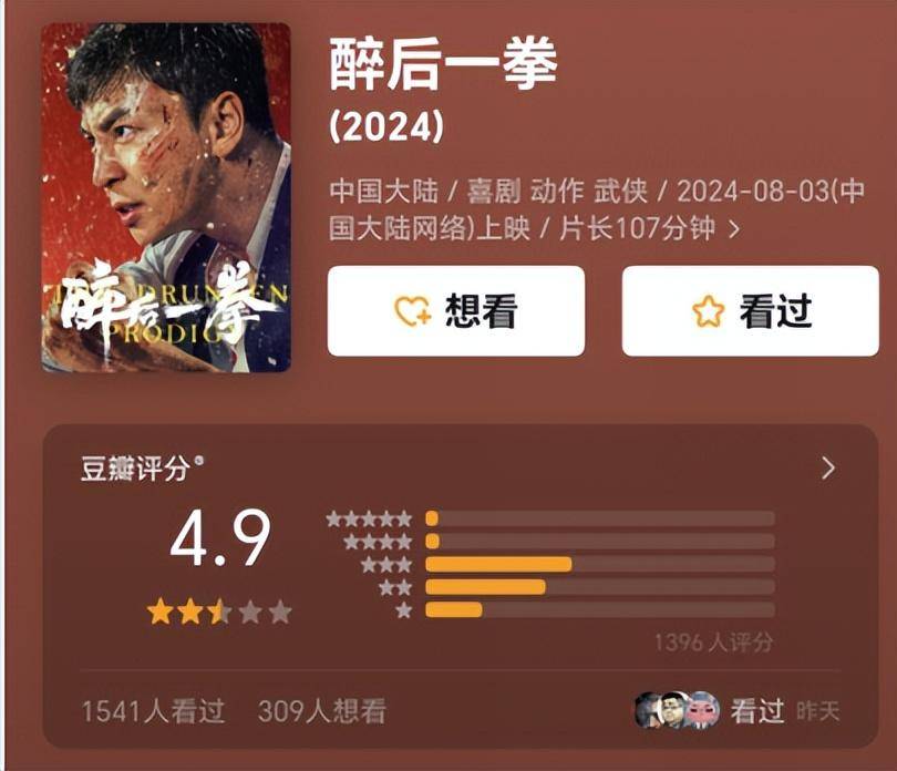 有第一部的经验后,释小龙很快就开始拍摄了第二部电影《醉后一拳》,可是这次观众们就不买账了,至于最后有没有亏,那就要打个问号了,但是口碑再次下滑是肯定的,毕竟4.9分成绩已经可以归类于烂片那一列。