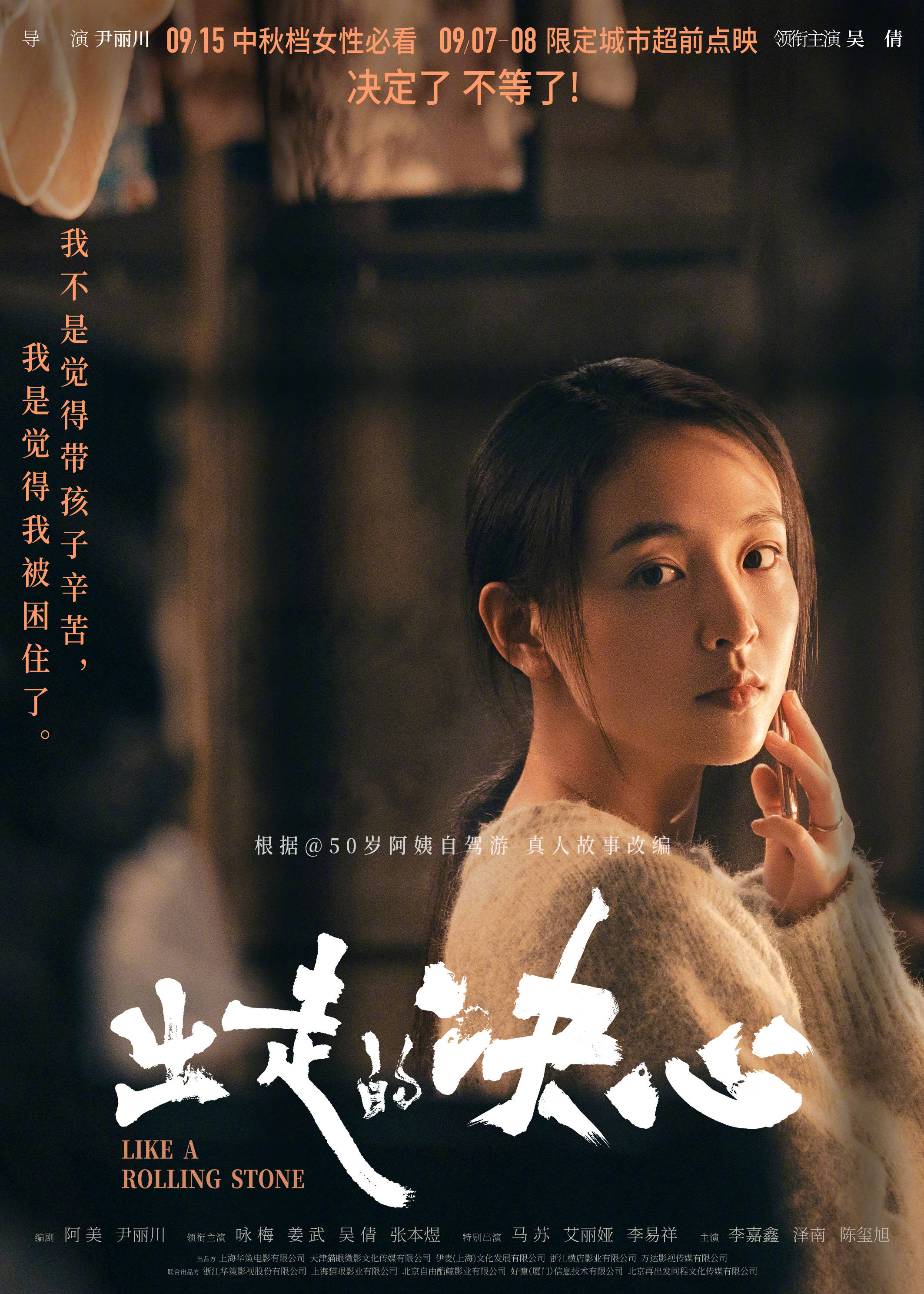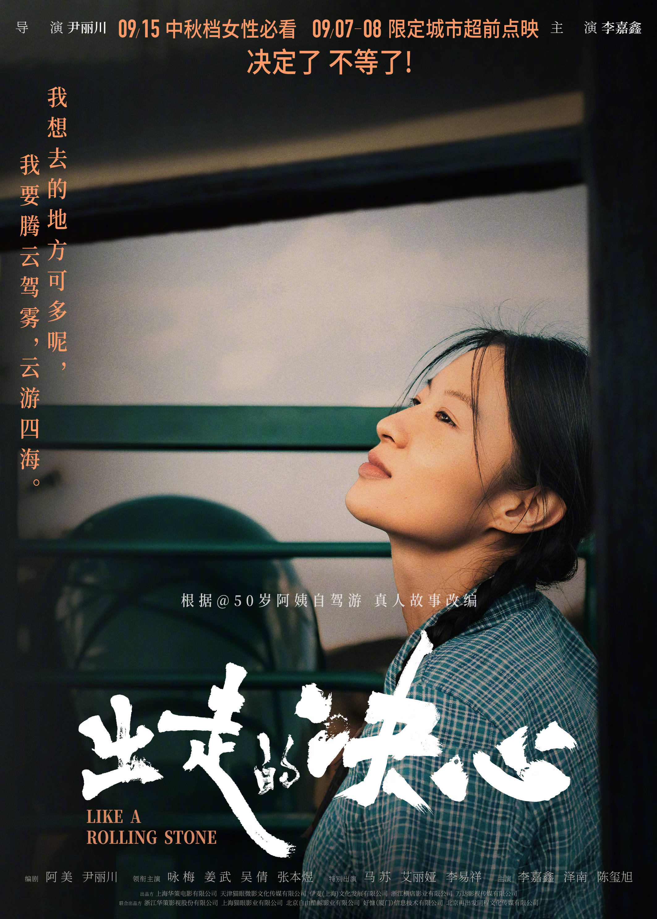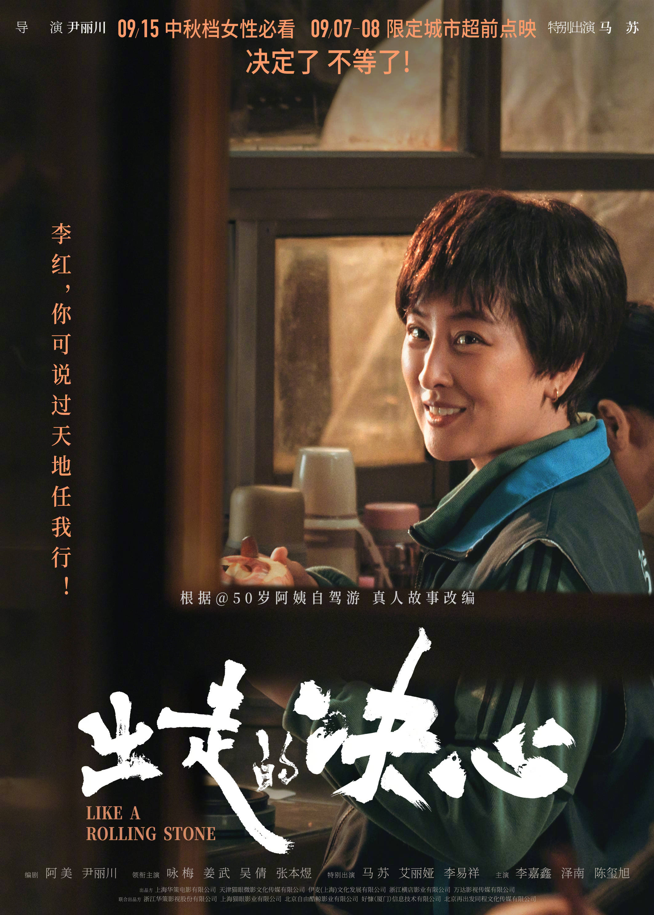 搜狐娱乐讯 根据50岁阿姨自驾游苏敏真人故事改编的电影《出走的决心》由尹丽川执导,阿美、尹丽川编剧,咏梅、姜武、吴倩、张本煜领衔主演。影片将于9月7-8日限定城市开启超前点映,预售进行中,9月15日全国公映。电影今日发布角色海报及预售海报,细腻生动揭开中国式婚姻家庭的众生相,在爱与隐痛的交织中逐渐看清自己,勇敢探寻更多人生的选择,真正为自己活一回。
