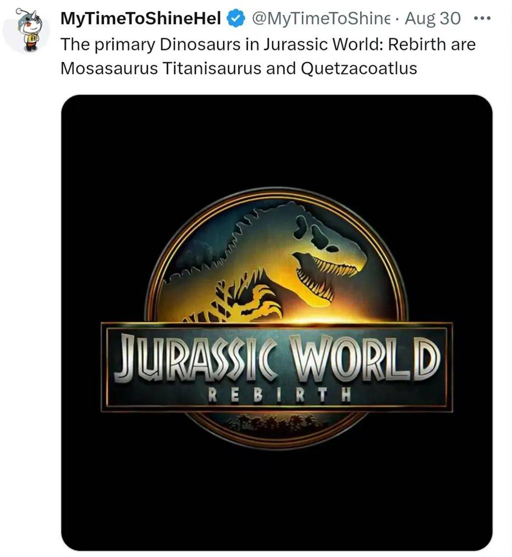 前几天的《侏罗纪世界4》曝光了官方故事梗概,其中提到了寡姐饰演的佐拉会寻找海陆空三大生物,并且获取它们的基因,先不管这个设定有多离谱,大家最关心的应该是,这三头巨型生物分别都是谁?经常爆料各种超级英雄消息的爆料人MTTSH,也难得爆料了一个侏罗纪消息,不知道是蹭热度还是真的了解,他说《侏罗纪世界4》的三大巨型生物,分别是沧龙、泰坦龙(Titanosaurus)和风神翼龙。