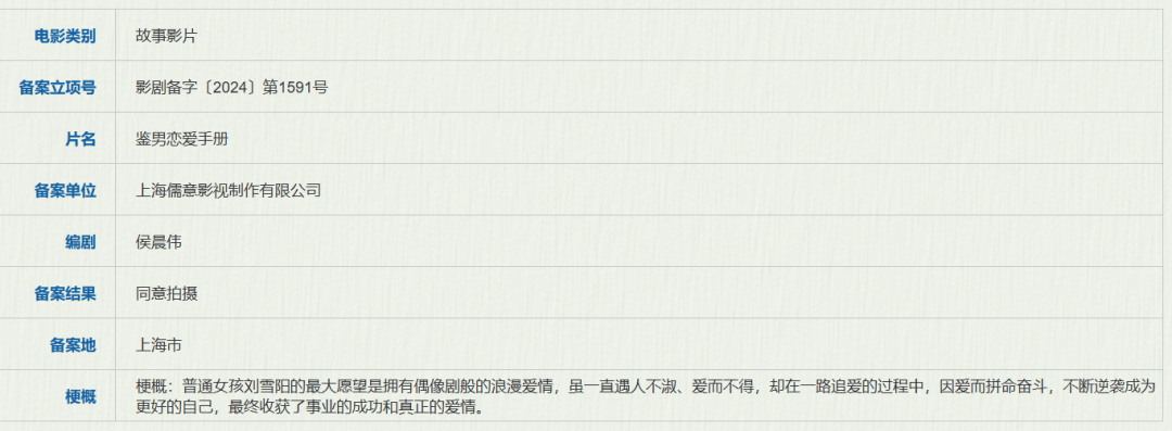 上半年备案了《“骗骗”喜欢你》、出品了《我才不要和你做朋友呢》《白蛇:浮生》等多部爱情喜剧后,儒意继续发力,依然专注于喜剧爱情片。《鉴男恋爱手册》仅是标题就具备了相当的吸睛能力,故事本身也关注到了当下青年群体的恋爱困境,明显将主打女性观众市场——毕竟对于爱情片来说,女性观众一直都是主力消费群体。