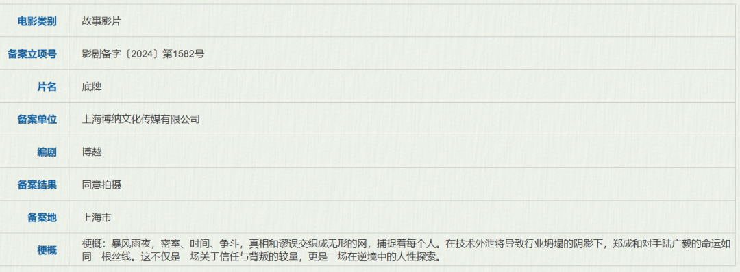 备案单位:上海小祠影视制作有限公司、新线索(北京)影视投资有限公司、壹线(上海)影视文化有限公司