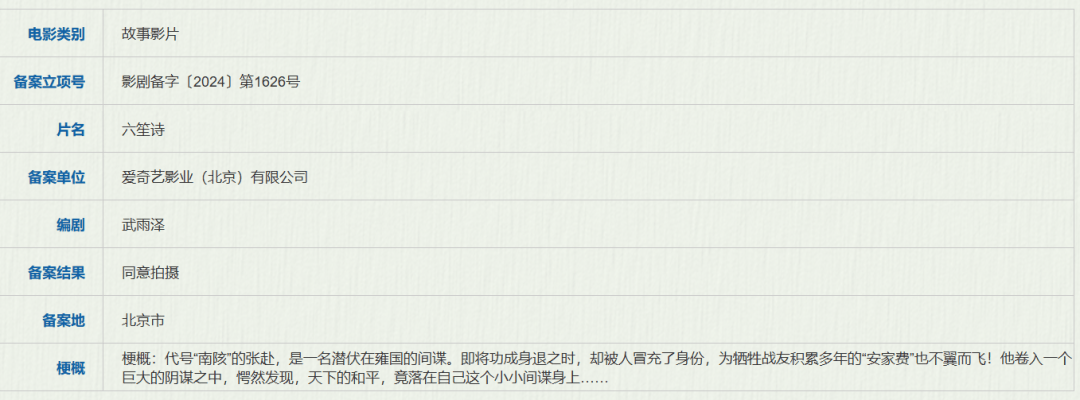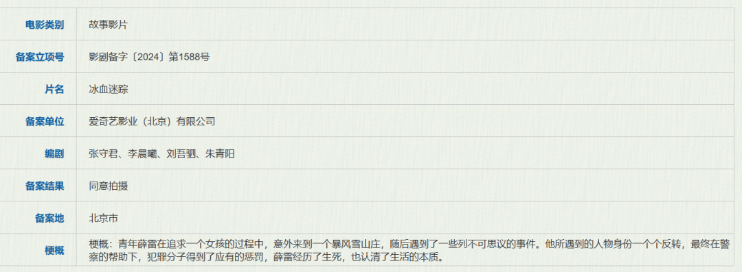 备案单位:爱奇艺影业(北京)有限公司