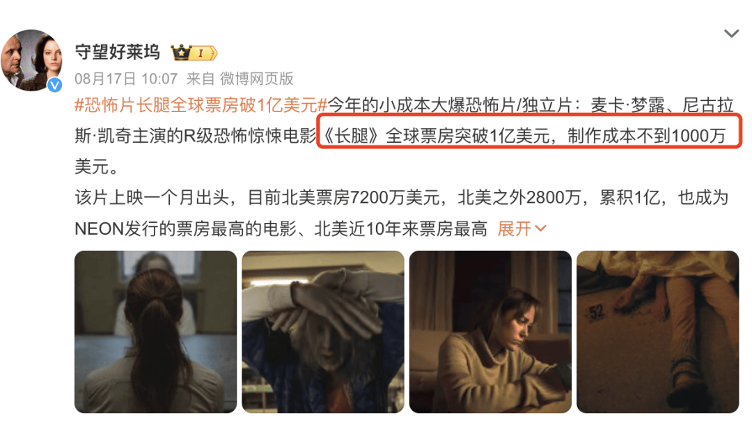 而《长腿》则成了NEON成立以来票房最高的电影。