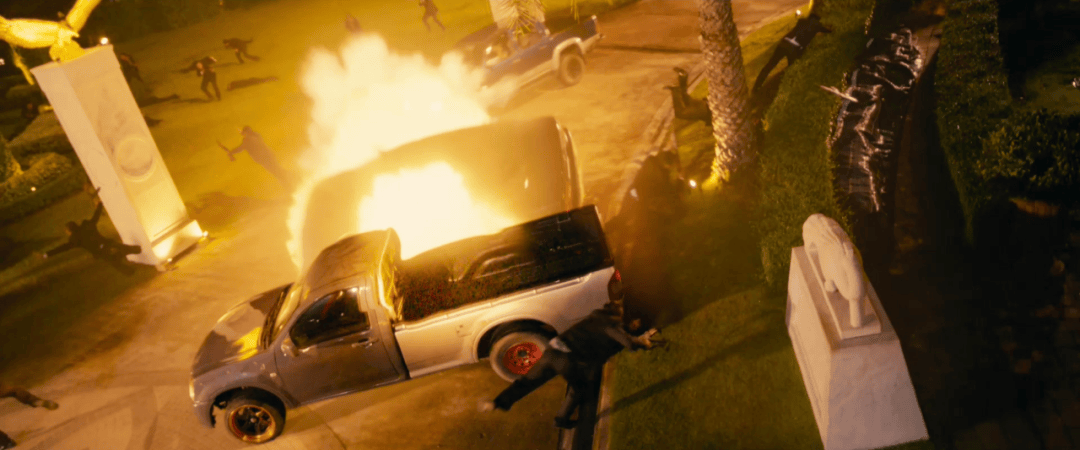 在动作场面上,导演沿袭了巅峰港片尽皆过火,尽皆癫狂的风格,将各种火爆场面轮番奉献给观众。