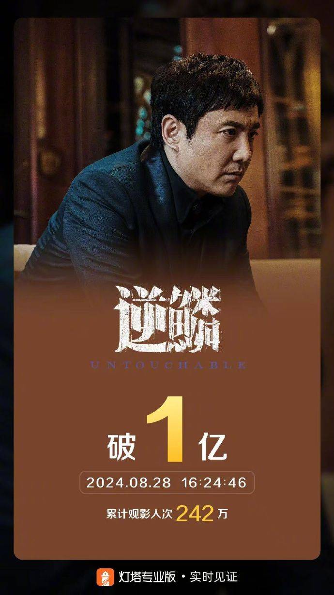 搜狐娱乐讯 8月28日,据灯塔专业版实时数据,截至8月28日16时24分,影片《逆鳞》票房突破1亿。