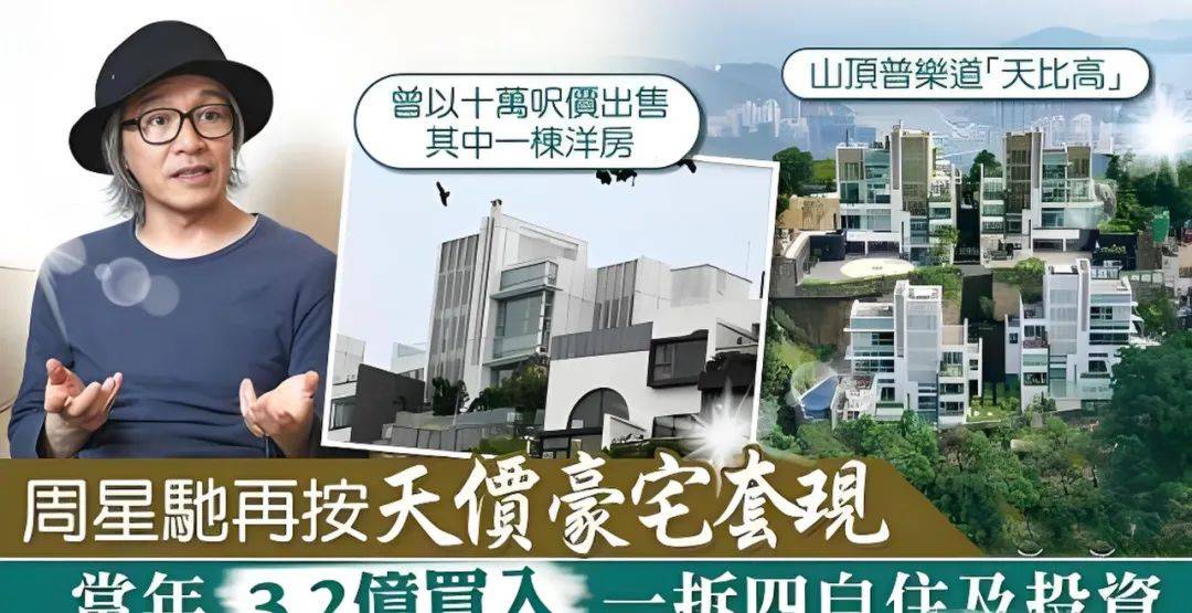然后他又拿这些钱,去投资房地产,屡屡被港媒报道,挥掷千金购买豪宅。在香港地价狂飙突进的年代,周星驰靠炒房地产赚得钵满盆满。