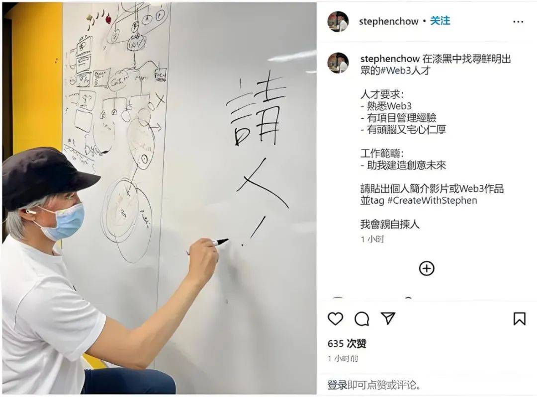 2022年,周星驰就曾在社交媒体上公开招聘“鲜明出众的Web3人才”,有意进军元宇宙。他也明确提及过对虚拟资产、人工智能等领域的兴趣,会对自己的部分影视IP再做拓展。