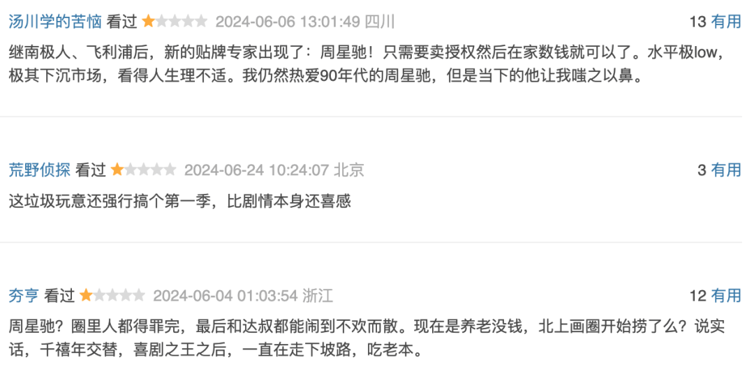 观众这才感觉上当,周星驰只是“出品人”,涉及内容产出的工作,导演、编剧、制作、监制,都与他无关。