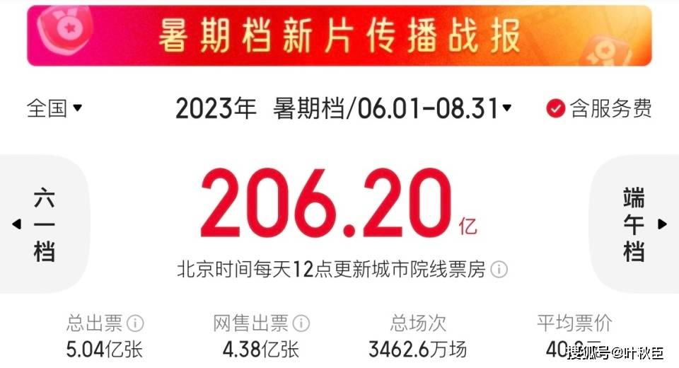 2023年,暑假档同样按照6月1日到8月31日的周期来计算,总票房达到了206亿,级别就与2024年截然不同了。
