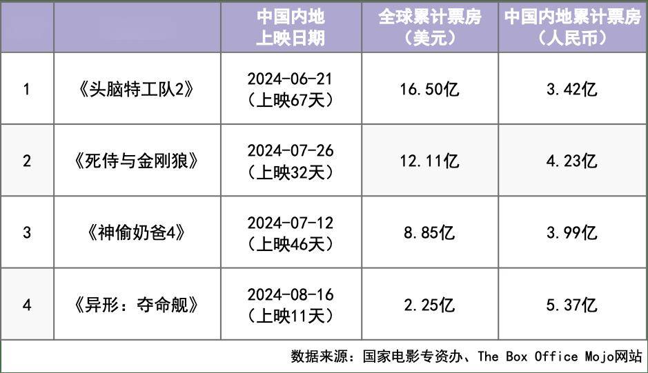 上述4部进口片票房数据(截至8月26日18:00)