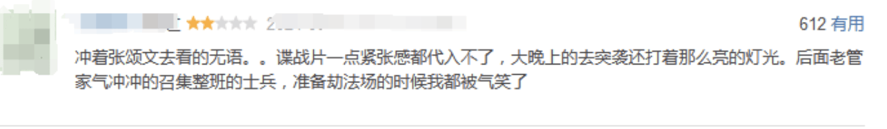 在之后持枪扫射的戏份里,从他身上也看不出浴血作战的严肃感,一惊一乍,反而更像是在演吃鸡游戏。